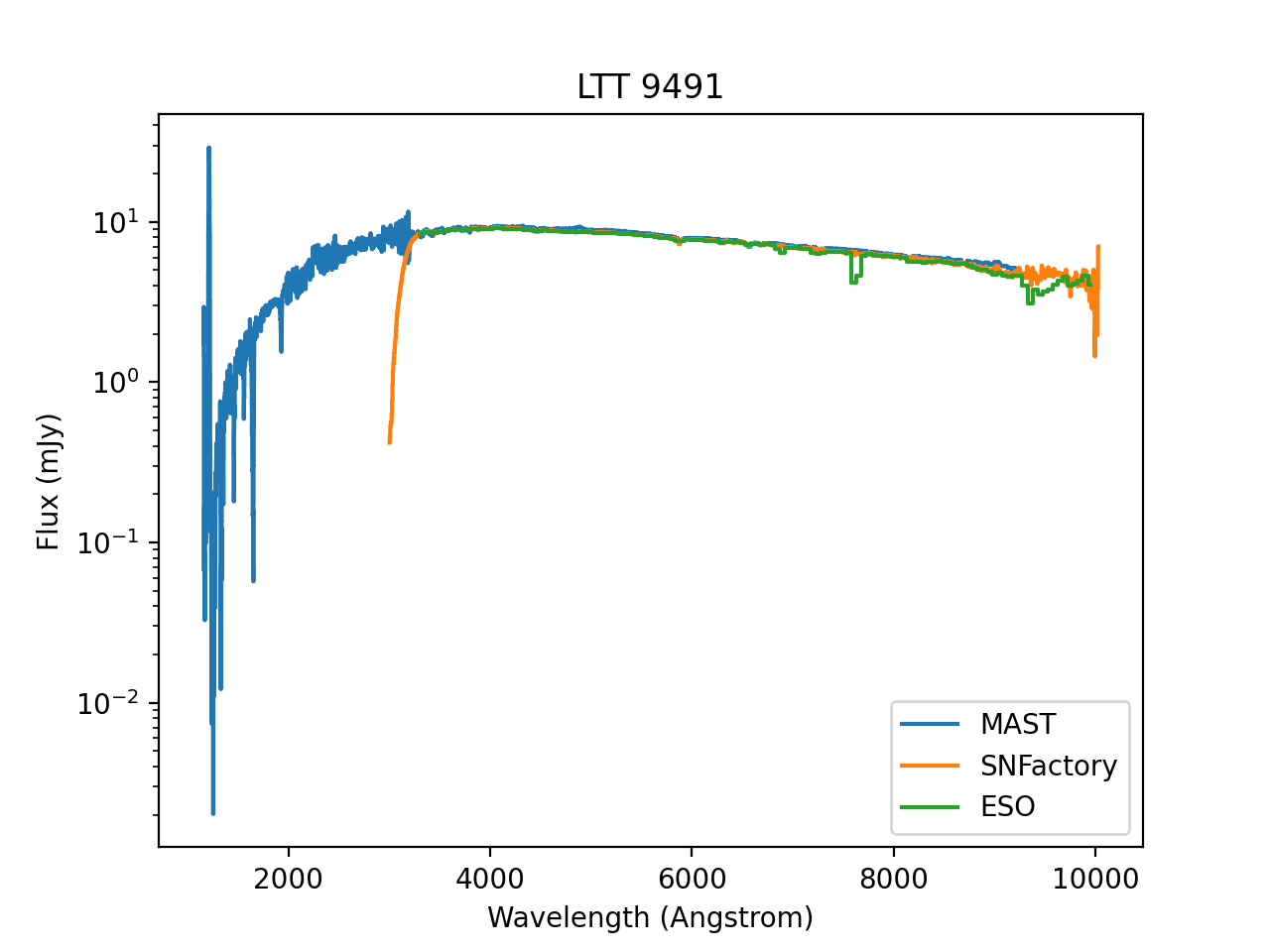useful tools for exploring and comparing spectra from the various databases. An example is shown here for LTT 9491 which has